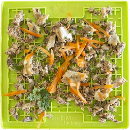 Spread the meat over the LickiMat® and scatter the vegetables over the top. Sprinkle on chopped fresh herbs. Adjust portion size to suit your pet.